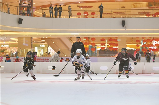 1月13日晚,长沙市岳麓区梅溪新天地步步高国际冰上中心,学生们在进行陆地冰球训练。近年来,湖南持续推动青少年冰球运动发展,越来越多的青少年加入到冰球运动中,感受冰雪运动魅力。