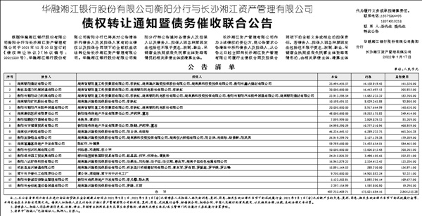 华融湘江银行股份有限公司衡阳分行与长沙湘江资产管理有限公司 债权转让通知暨债务催收联合公告