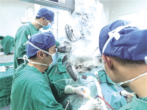去年2月20日,苏先生在湖南省直中医医院神经外科接受手术。当天,金海泉团队“硬核”出征,凭借丰富的手术经验和熟练的手术技巧,为苏先生完成“左侧桥小脑巨大听神经瘤切除术”,顺利摘除了这颗“定时炸弹”。术后,苏先生惊喜地发现,尽管肿瘤与神经粘连在一起,“但手术后不仅头痛耳鸣的症状消失,且没有留下任何手术后遗症。”