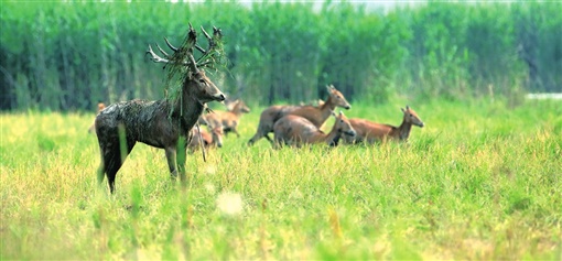 洞庭湖麋鹿。 东洞庭湖国际重要湿地:牢记殷殷嘱托,建设大美洞庭 湖南东洞庭湖国际重要湿地位于有着“中国观鸟之都”的岳阳市境内,总面积19万公顷。 近年来,岳阳市坚持以习近平生态文明思想为引领,认真践行“人与自然和谐共生”理念,通过采取调优规划,强化法治,铁腕整治,生态修复等综合治理措施,坚实扛牢“守护好一江碧水”的政治担当。湿地生物多样性水平不断提升,“候鸟的欢歌、麋鹿的倩影、江豚的微笑”成为岳阳一张崭新的生态名片。 |