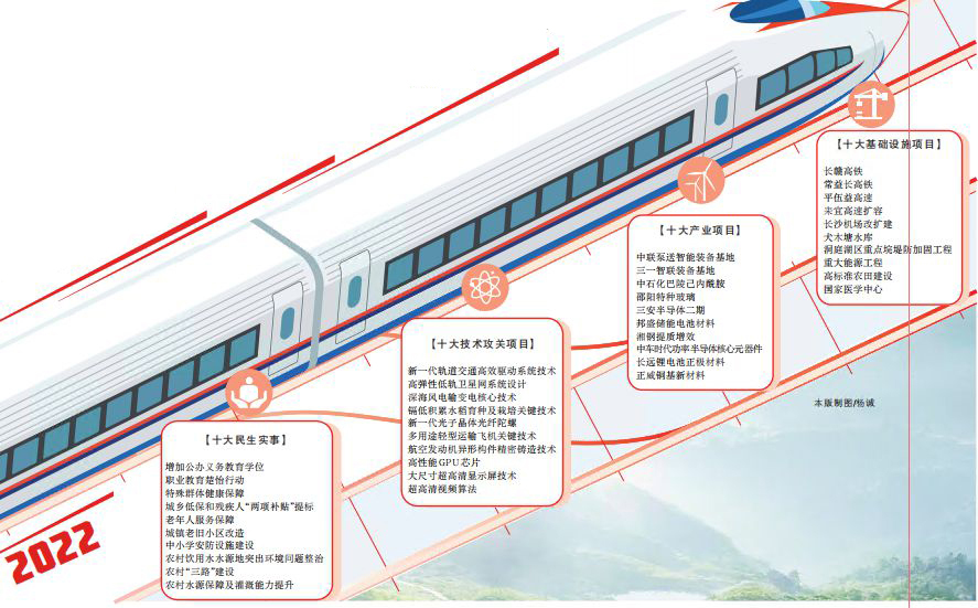 ●提升创新引领力。加快“三区两山两中心”等平台建设,高标准建设岳麓山实验室;加快“卡脖子”技术攻关揭榜挂帅,力争在种业、计算等领域取得一批原创性科技成果,重点抓好“十大技术攻关项目”。