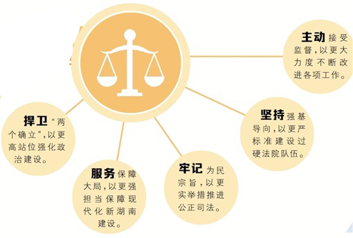围绕“努力让人民群众在每一个司法案件中感受到公平正义”的目标,开展“队伍教育整顿巩固年”活动,推动审判执行工作高质量发展,实现湖南法院各项工作走在全国法院前列,为全面建设社会主义现代化新湖南提供更好的司法服务和法律保障。