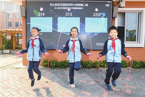仰天湖桂花坪小学是长沙市首个智慧跳绳试点校。