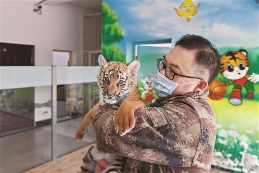 1月20日,长沙生态动物园,该园首只人工育幼的华南虎幼崽在饲养员的精心照顾下成长。华南虎为中国特有的虎亚种,仅在中国分布,亦称“中国虎”,在野外已灭绝,被列为世界十大濒危物种。虎年即将到来,该园作为动物保护及繁育珍稀濒危物种的重要场所,进行了人工育幼,对老虎幼崽全方位呵护。长沙生态动物园开园10年来,已繁殖华南虎8只。