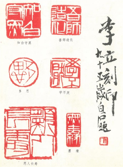 李立从小天资聪慧。十来岁时,如鬼使神差一般,他突然对字画上盖的不同款式和大小的朱红色印章感起兴趣来。有一天甚至将外祖父珍藏的明清字画上的印章一一剪下,贴在一个小本上,供自己时时揣摩欣赏。这一举动,差点把他的外祖母气疯。从那时起,他就与印章结下深缘,经常到湘江边上将可以刻印的石头捡回家里,还找铁匠打了几把雕刀,一有空就在石头上刻刻划划,在油灯下一练就到深夜,有时一颗印章要反复刻上十数遍,手指磨破都是常事。正是这种“童子功”,为他一生的治印事业打下坚实的基础。