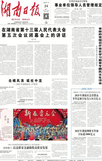 湖南省第十三届人民代表大会第五次会议,经过全体代表和与会同志的共同努力,圆满完成了各项议程,即将胜利闭幕。会议期间,全体代表肩负全省人民重托,充分发扬民主,积极建言献策,认真履职尽责,展现出饱满的政治热情、强烈的使命担当、昂扬的精神面貌。大会开得很成功,是一次高举旗帜、团结鼓劲,风清气正、催人奋进的大会,必将激励动员全省干部群众以更加坚定的历史自信,投身全面建设社会主义现代化新湖南伟大实践。