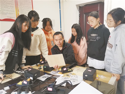宝庆烙画又称“烙花”“火笔画”,用油灯、烟灯炙烤加热铁针、石条,主要在竹木材料表面进行烙绘,是非常古老的一种民间美术,邵阳市市级非遗项目。唐文林是该市“宝庆烙画”唯一的代表性传承人。