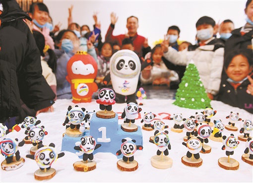2月13日,孩子们展示亲手制作的北京冬奥会吉祥物“冰墩墩”。当天,湖南雨花非遗馆开展“迎元宵佳节 为冬奥助力”活动,孩子们利用面塑非遗技艺,巧手捏出了各种“冰墩墩”,活灵活现,惹人喜爱。