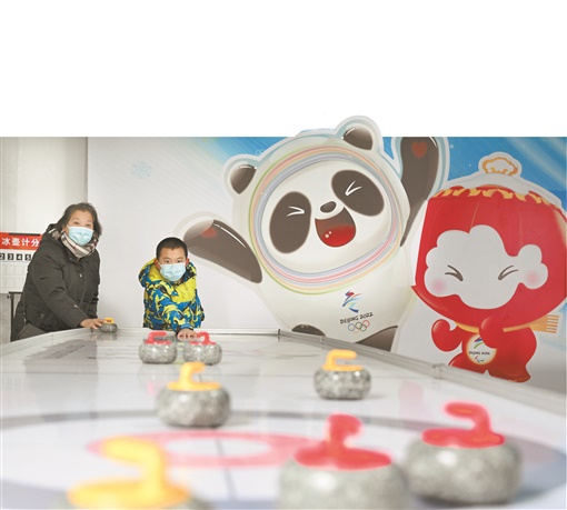 ▲2月12日,北京海淀公园冬奥文化广场冰雪体验区,市民在体验冰壶。北京2022年冬奥会期间,在海淀公园冬奥文化广场冰雪体验区,市民可以通过科技手段体验冰雪运动的速度与激情。湖南日报全媒体记者 郭立亮 摄