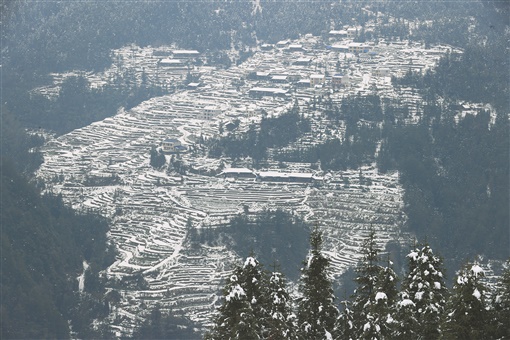 2月24日,雪后的新化县奉嘎山生态茶园银装素裹,穿透厚厚积雪的叶梢像刚从春泥里冒头的小芽,萌态可掬。去冬今春,我省总共出现了5次低温雨雪天气过程。据专家介绍,持续冰雪天气会延迟春茶采摘日期,也会冻死一些虚弱的茶树导致减产。但冰雪也会改善土壤墒情,降低病虫害,且因持续冰雪导致新茶的孕育期加长,有益物质含量更丰富。
