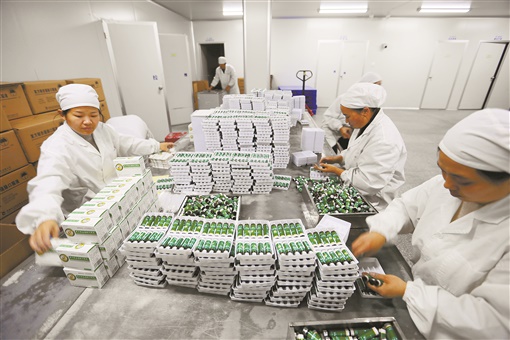 2月22日,靖州苗族侗族自治县补天药业有限公司,工人在包装车间忙碌。该县作为全国最大的茯苓集散地和著名茯苓生产区,茯苓交易量占全国近70%,出口量占全国的三分之二。刘杰华 雷鸿涛 摄影报道