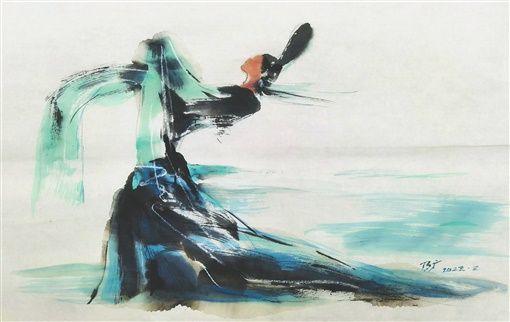 粗观、细赏陈乃广先生的舞蹈水彩画,我以为,乃广是一位既能极工,又能极简,分别地在两个极端上有所创造,而最终又不肯拘泥于任何一个极端的艺术家,他所选择的造型尺度和审美的中界点,是东方的,也是西方的。“昔我往矣,杨柳依依;今我来思,雨雪霏霏。”(《诗经·采薇》)他迷恋中国各民族绚丽多彩的舞蹈,如杨丽萍舞姿的原生态美、矫健美;迷恋西方芭蕾、爵士舞蹈,如《天鹅湖》展现的柔韵美、舒展美。他还有舞蹈的环境和舞蹈的伴侣。他的夫人——余慧女士,就是一位知性的舞者。上世纪60年代,他们一起下放江永当知青,共同的爱好让他们成了舞蹈眷侣。舞是他俩心中的美,但陈乃广心中追求的梦还有绘画。他尝试着美与梦的结合,用画笔速写了大量的舞台真实,舞者有鼻子有眼,动作妩媚抓人,观众也喜欢这样的作品。