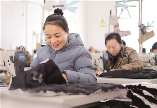 3月2日,通道侗族自治县独坡镇独坡村,村民在“微工厂”里加工服装。近年,该县出台优惠政策,鼓励当地劳动密集型企业进驻村寨设立“微工厂”,通过订单化生产,让村民在家门口就业,实现种田、务工、顾家“三不误”。