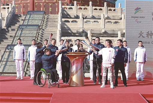 3月2日,北京2022年冬残奥会火种汇集仪式在天坛公园举行。在北京、延庆、张家口三个赛区采集的8个火种,连同在英国曼德维尔采集的火种,共9个火种汇聚生成北京2022年冬残奥会官方火种。