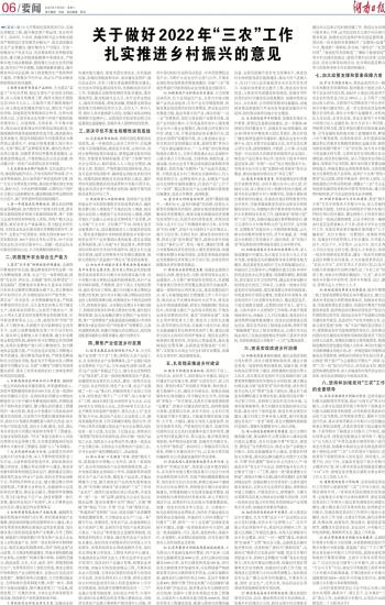 关于做好2022年“三农”工作 扎实推进乡村振兴的意见