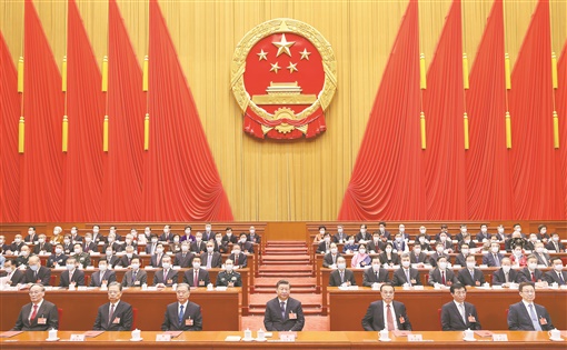习近平、李克强、汪洋、王沪宁、赵乐际、韩正、王岐山和大会主席团成员在主席台就座。