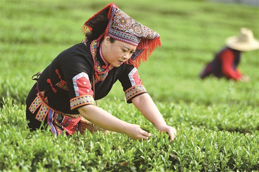 3月20日,永州市回龙圩管理区回龙镇神仙洞村,茶农在采摘春茶。春分时节,回龙圩管理区到处可见采茶人的身影,大家忙着采新茶,增加收入。