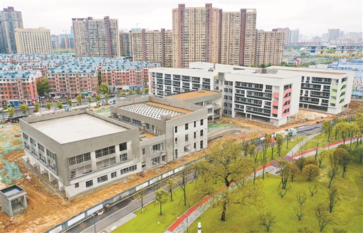 3月22日,长沙市开福区清水塘绿地小学主体已完工,将于今年秋季开学投入使用。今年,开福区将新建开办清水塘绿地小学、史家坡学校等4所学校,新增学位6570个,解决学位紧张问题,化解“大校额”现象,更好地实现义务教育优质均等。 湖南日报全媒体记者 傅聪 摄