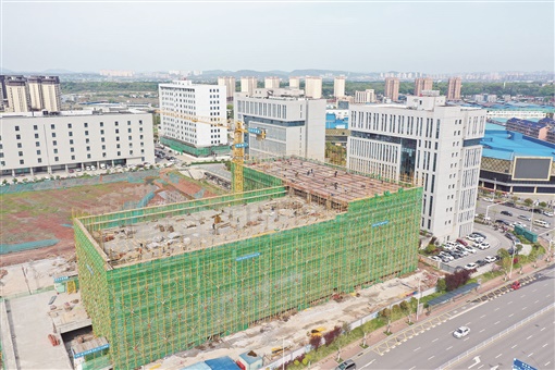 3月29日,长沙市天心软件产业园二期项目现场,150余名工人在加紧主体建筑施工。该产业园总占地面积130亩,计划总投资20亿元。目前已聚集了70多家企业。二期项目占地80亩,地上主体建筑共5层,有望于6月初封顶。项目建成后,将引进500余家相关企业,年产值40亿元以上。湖南日报全媒体记者 田超 张福芳 摄影报道
