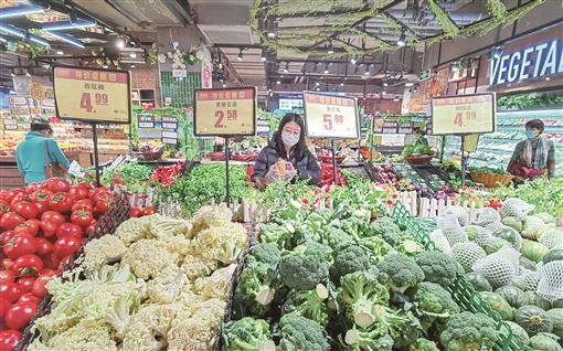 3月29日,长沙市开福区某超市,蔬菜价格稳定,货物充足。面对疫情,长沙第一时间启动了市场保供应急预案,组织40余家重点保供企业,保障生产、库存、物流、无接触配送等各环节顺畅。长沙市商务局每日监测货源、库存情况,批发、零售价格情况,以及基地和流通环节储备、销售情况,随时做好应急投放准备。 湖南日报全媒体记者 傅聪 摄