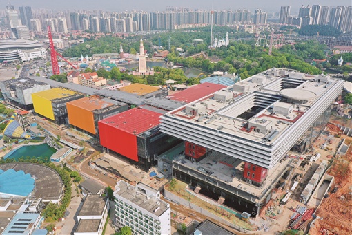 4月11日,长沙市开福区金鹰影视文化城,湖南广电节目生产基地及配套设施建设项目(“七彩盒子”)正进行外部装饰和内部设备安装。该项目由芒果体验馆、5个演播厅等设施组成,占地面积约120亩,建成后将成为面向市场的电视节目生产基地。湖南日报全媒体记者 徐行 摄