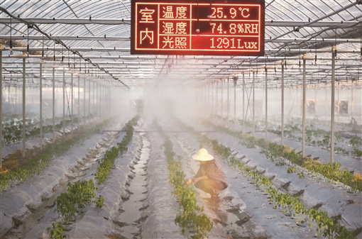 4月8日,浏阳市达浒镇金石村滩头蔬菜专业合作社智慧温控大棚,应用现代化喷滴灌、水肥一体化设施,蔬菜种植大面积实现智慧化,提升了绿色蔬菜种植效率。 |