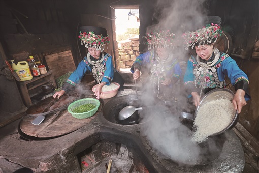 春社是我国最为古老的传统民俗节日之一,主要祭祀土地神。社饭自古有之,是汉、土家、苗、侗等民族祭祀的一种食品。吃社饭,一般在社日(即立春后第五个戊日,约每年春分前后)进行。“燕子来时春社,梨花落后清明”,北宋词人晏殊告诉我们春社正是燕子飞来之际。“五戊经过春日长,治聋酒好漫沽尝。万家午后炊烟起,白米青蒿社饭香。”这首清代的《潭阳竹枝词》则生动描绘了土家人“过社”的热闹情景。