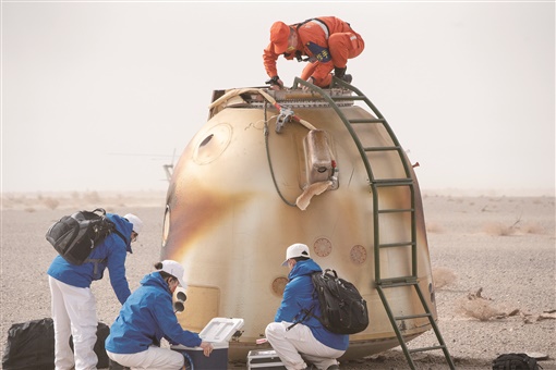 9时6分,北京航天飞行控制中心通过地面测控站发出返回指令,神舟十三号载人飞船轨道舱与返回舱成功分离。9时30分,飞船返回制动发动机点火,返回舱与推进舱分离。返回舱成功着陆后,担负搜救回收任务的搜救分队及时发现目标并第一时间抵达着陆现场。返回舱舱门打开后,医监医保人员确认航天员身体健康。载人航天工程空间站阶段飞行任务总指挥部有关领导在东风着陆场迎接航天员。