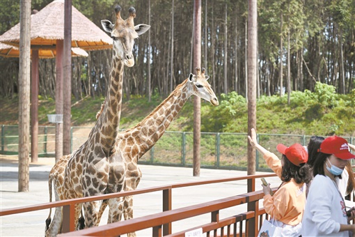 4月21日,游客在与动物亲密接触。当天,汉寿同发野生动物世界正式开园营运,该园总投资35亿元,总占地面积2128亩。目前,第一期项目已完成52个馆舍的建设,入园物种有150多种,现场展示约3500多头(羽)野生动物。