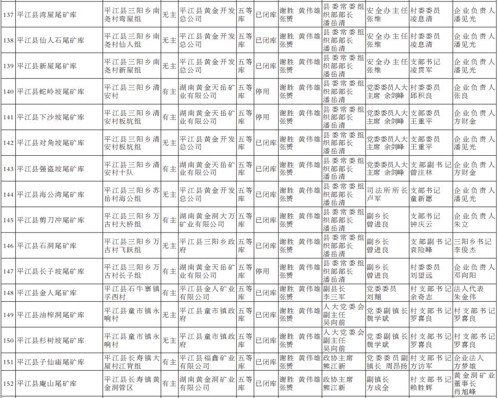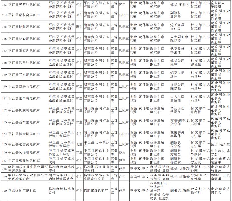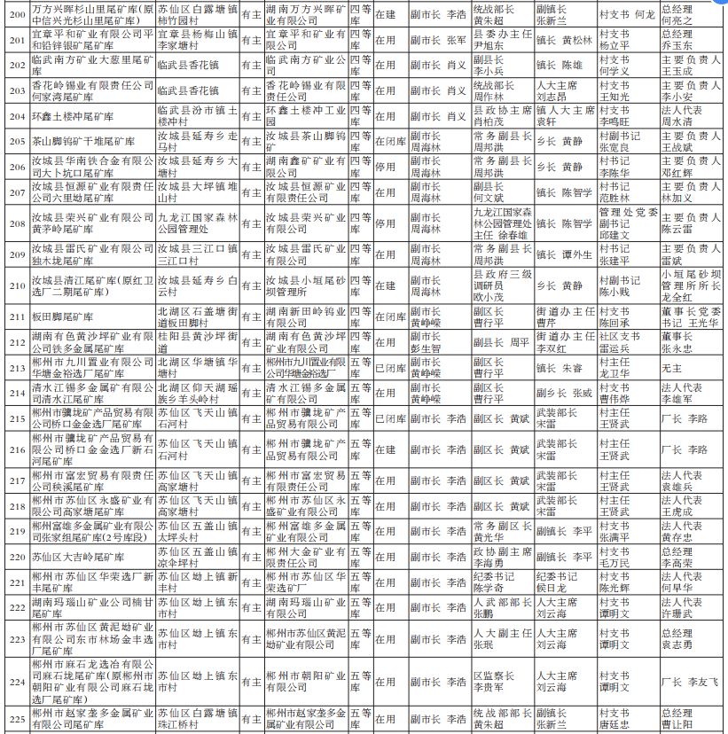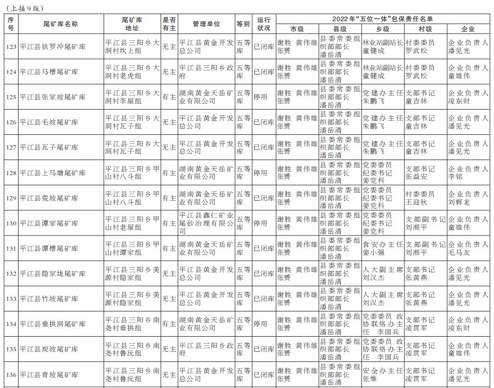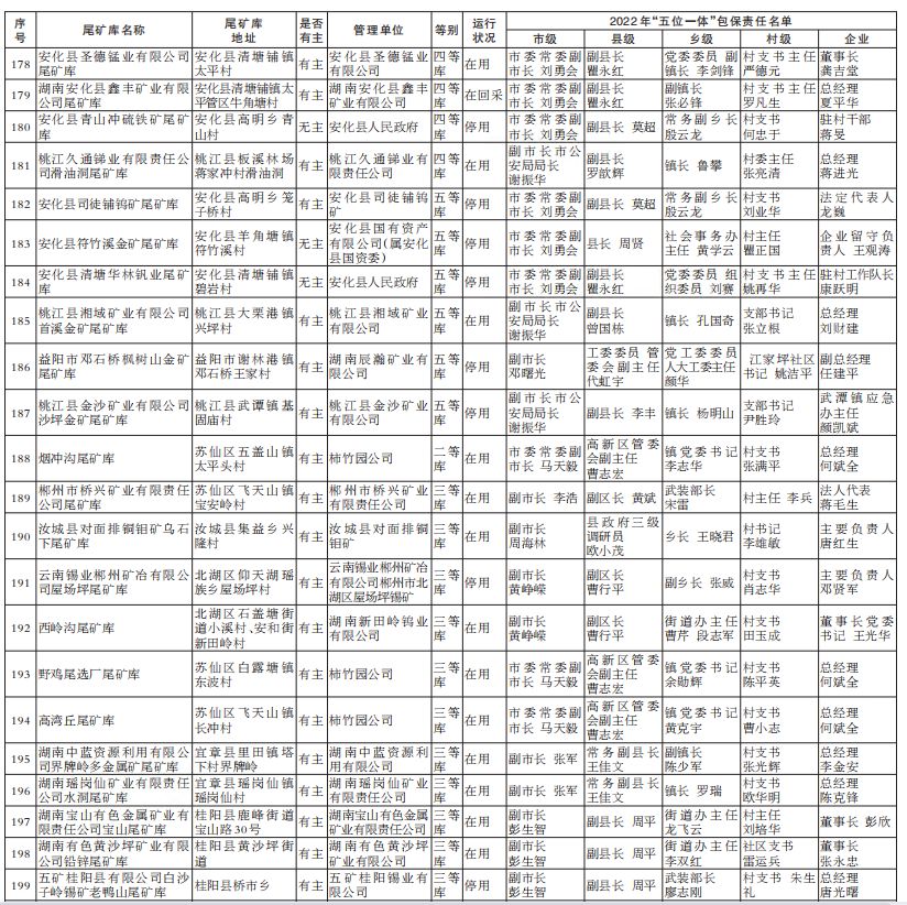 2022年湖南省尾矿库基本信息和“五位一体”包保责任名单
