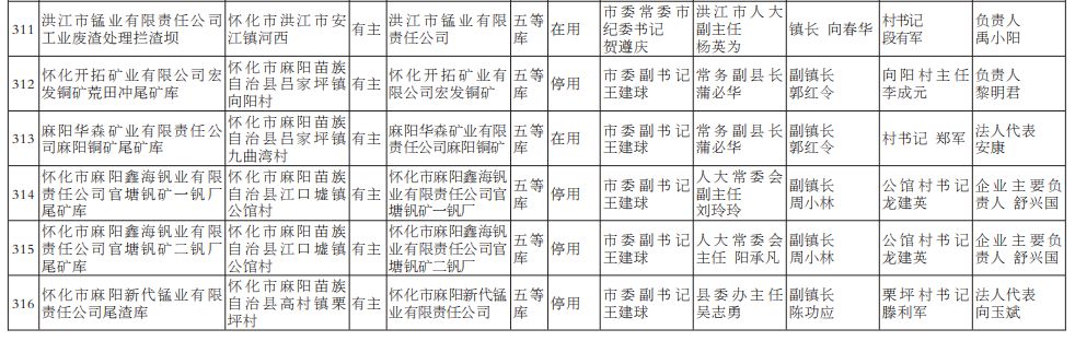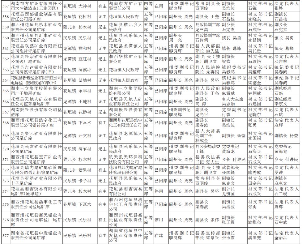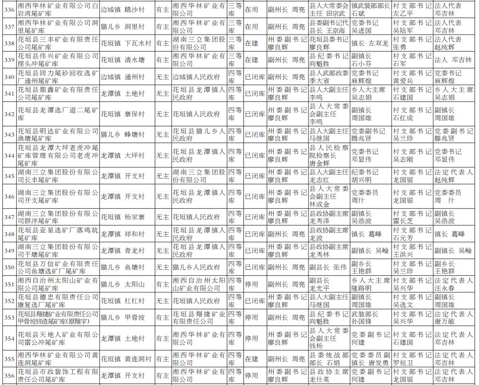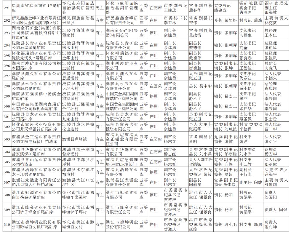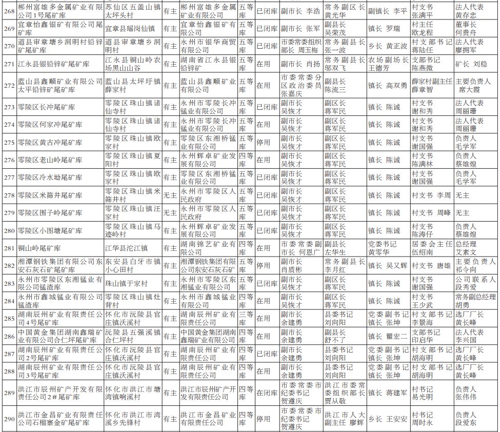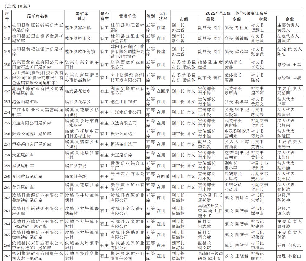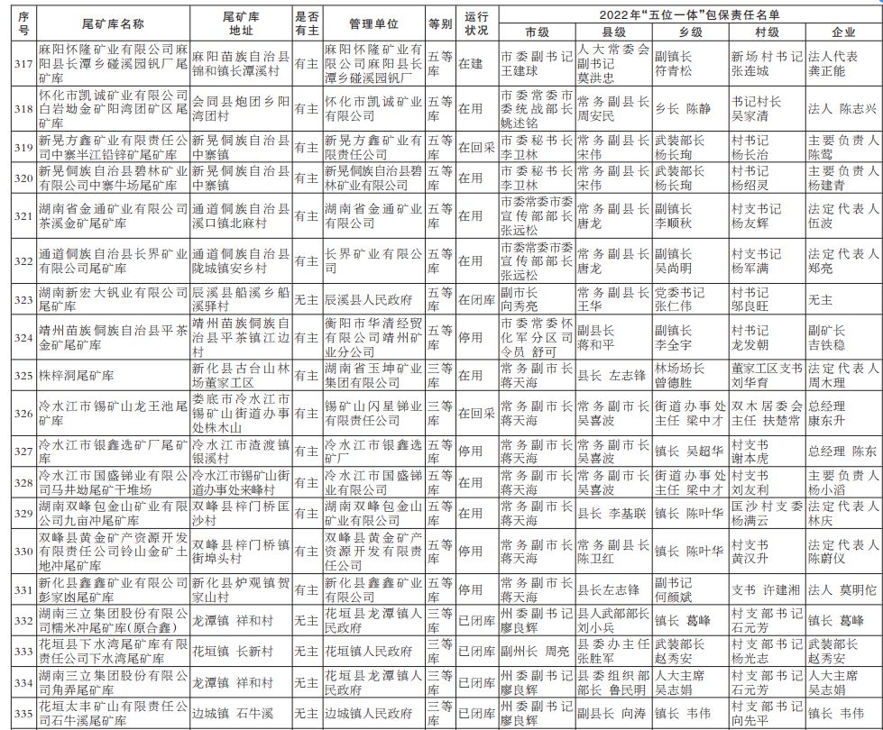 2022年湖南省尾矿库基本信息和“五位一体”包保责任名单