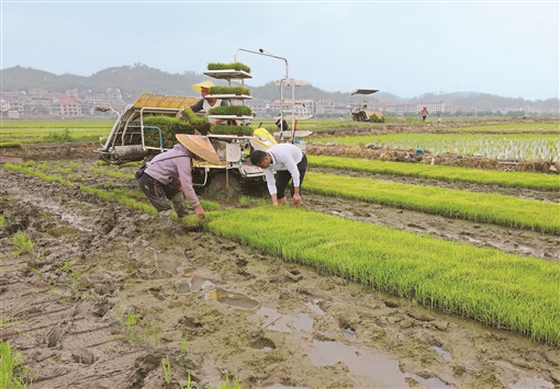 4月23日,涟源市龙塘镇,农民在涟源珠梅湾农业开发有限公司秧田里进行田间管护。今年,该市积极发展种粮经营主体,30亩以上经营主体达496户,总数比去年翻了一番。目前,全市正抓紧早稻集中育秧,预计本月底可完成21万亩的早稻大田移栽。