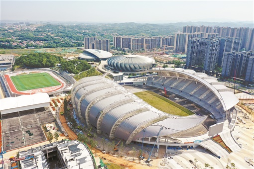 5月4日,岳阳市体育中心场馆建设现场,施工人员抢抓工期,加快对场馆进行扫尾施工。该中心作为岳阳市承办2022年第十四届省运会的主场馆,总建筑面积11.84万平方米。2022年第十四届省运会将于9月在岳阳举办。