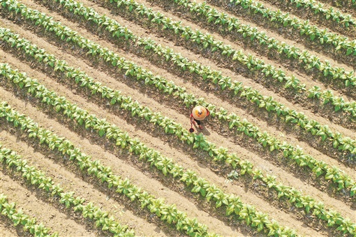 5月5日,新田县枧头镇彭梓城村,村民在田间劳作。当天立夏,当地村民抢抓农时,给农作物浇水、施肥、除草,田间地头一派忙碌。钟伟锋 摄