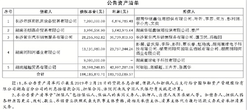 中国华融资产管理股份有限公司湖南省分公司作为上述债权和担保权利的受让方,特此要求借款人/担保人、或借款人/担保人的权利义务承继人,自公告之日起,立即向中国华融资产管理股份有限公司湖南省分公司履行主债权/担保合同约定的还本付息义务/担保责任。