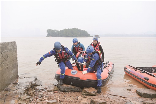 5月15日,长沙市开福区长汇船务码头,队员进行水上救援项目实战演练。当天,省红十字蓝天救援中心举行应急救援演练,全面提升水域救援能力。