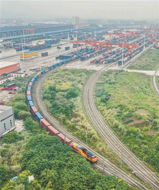 5月21日上午,一趟载有重庆本地食品、农用机械的陆海新通道中老铁路出境班列从重庆团结村中心站顺利启运,将在4天后到达老挝万象,这也是全国首趟运用“铁路快通”模式出境的陆海新通道中老铁路班列。