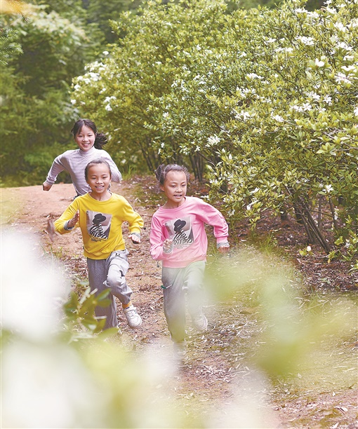 5月21日,双峰县沙塘乡忠实村栀子花基地,小朋友在花海中游玩。近年来,当地通过“合作社+基地+农户”的模式,发展黄栀子7000余亩,推动农旅融合发展,有效带动村民就业增收,助推乡村振兴。 乃继辉 摄