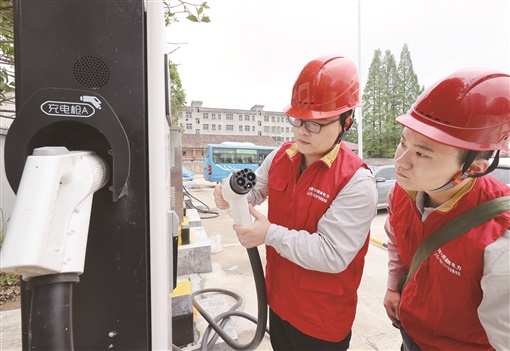 5月26日,安乡县三岔河镇,供电员工为刚安装好的充电桩做性能检测。去年10月,国网安乡县供电公司在全省率先实施“充电站乡乡通”建设,项目投资1000多万元,在全县12个乡镇建设2装4口充电桩,目前三岔河镇、官垱镇、黄山头镇充电站已完成建设,预计今年7月可全部完工。 湖南日报全媒体记者 赵持 通讯员 庞文琦 摄影报道