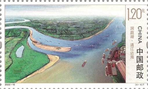 洞庭湖,碧波万顷,浩瀚迂回,山峦突兀,渔帆点点,芦叶青青;千年古楼岳阳楼相伴,历代文人墨客吟咏,湖水余韵绵长。2022年5月28日,中国邮政将发行《洞庭湖》特种邮票一套4枚,小型张1枚。邮票图案名称分别为:君山叠翠、凌云鹤影、城头稻源、通江达海,小型张图案名称为:洞庭天下水。
