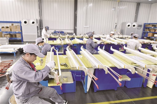 6月9日,株洲市渌口区南洲工业园株洲兆源机电科技有限公司生产车间,工人在生产高端电磁线。该公司生产研发的产品广泛运用于轨道交通电机领域,是国内少数生产轨道交通用电磁线型号全覆盖的企业。“复兴号” 列车电机用电磁线90%以上由该公司供应。