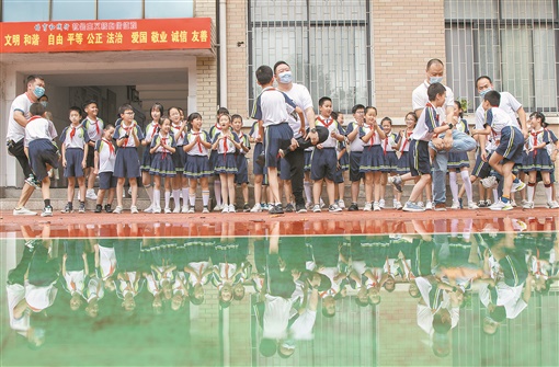 6月17日,孩子们在和父亲一起游戏。当天,长沙市开福区中山路社区联合营盘路小学开展“爸爸,我爱您!”亲子活动,增进父亲与孩子间的感情,培养学生孝敬父母、尊敬长辈的优秀品质。湖南日报全媒体记者 李健 通讯员 邵凇 摄影报道