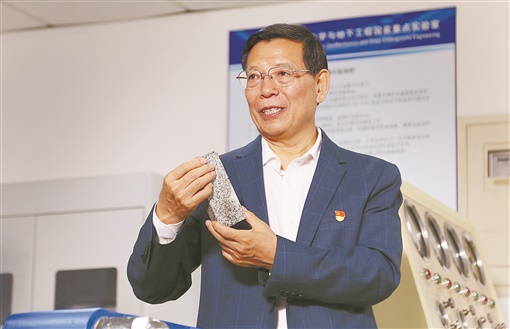 湖南成矿地质条件优越,矿产资源丰富,优势矿产多且分布相对集中。何满潮建议:“未来在矿山开采方面,湖南可以多推行这种既节约资源又安全高效的无煤柱自成巷技术。”近年来,他带领团队与我省在科技、人才培养、装备研发等方面开展了相关合作。其中,“深井热害与矿井热能利用”研究成果在我省周源山煤矿等矿井成功应用,为湖南深部煤炭资源开采提供了重要的技术支撑。与矿山岩体打交道,常常面临山体滑坡、塌方事故等危险。何满潮带领团队研究控制岩爆、冲击地压、软岩大变形等重大地下工程灾害,破解了一道又一道难题。