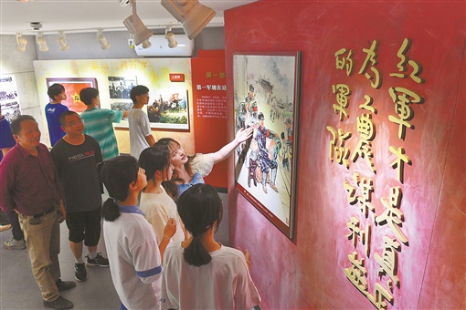 6月29日,桂东县沙田镇,游客在《三大纪律·六项注意》颁布地景区参观学习。今年,该景区进一步提质升级,完善公共服务设施,促进红色旅游发展。1月以来,该景区累计接待游客达15万人次。