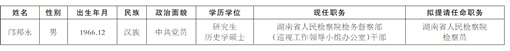为进一步加强对省人民检察院提请省人大常委会任命人员的监督,增强其公信力和群众基础,现对拟提请省人大常委会任命法律职务人员进行任前公示: