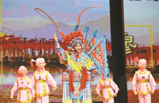 6月29日晚,演员在表演越剧《穆桂英挂帅》。当晚,好戏天天演“迎七一·颂党恩”长沙市天心区文化惠民越剧专场演出活动举行。专业演员、越剧爱好者和小学生同台演出经典越剧、越韵古诗等节目,优美动听的唱腔、真切感人的表演,尽显越剧艺术魅力。湖南日报全媒体记者 田超 摄
