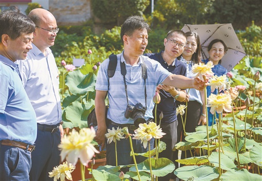 6月30日,湖南师范大学党外知识分子联谊会教授团队在参观莲花基地,考察莲花的品种与性状。当天,该团队前往长沙市岳麓区莲花镇,为当地种植大户进行莲花知识的科普、推广,并对该镇乡村水生观赏花卉培育、淡水鱼类养殖及民宿发展等建言献策,助力乡村振兴。