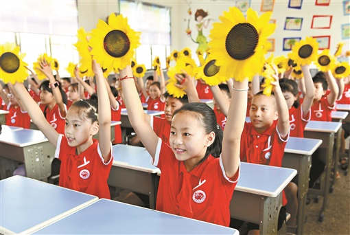 6月30日,洞口县石江镇中心小学,学生在课前演唱《党的恩情万年长》等歌曲。连日来,该县各中小学校利用课前一支歌广泛开展迎“七一”主题活动,通过传唱经典革命歌曲,表达对党的深厚感情。滕治中 米赛男 摄影报道