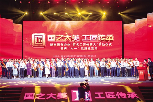 为大力弘扬劳模精神、工匠精神, 7月1日上午,省国资委、省总工会隆重组织湖南国有企业“百名工匠传薪火”活动启动仪式。来自中央在湘国企、省属国企、市州国有企业,全省国企系统的100名基层一线工匠技能人才被评为“国企工匠”。