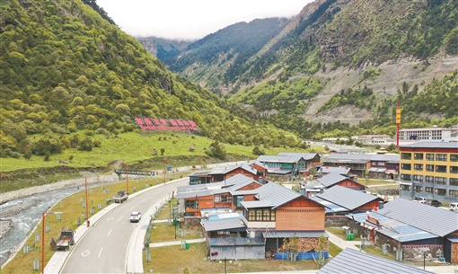 河谷中的玉麦村,街道干净,一幢幢藏式风格民居整齐排列,家家户户飘扬五星红旗。
